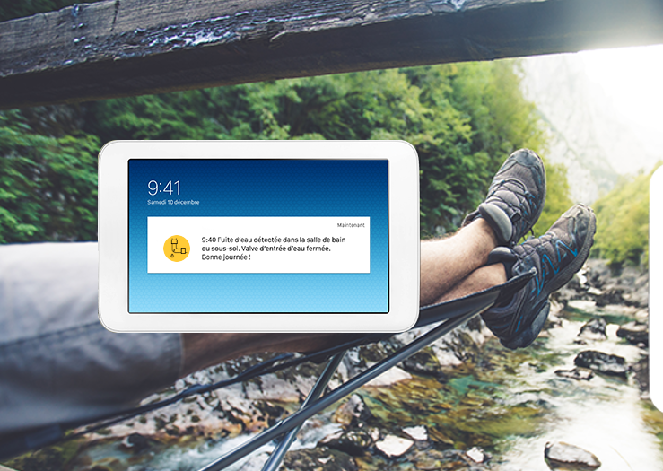 Par courriel, notification ou texto, vous êtes avisé de l’incident et de la fermeture sécurisée de la valve d’entrée d’eau principale. La fuite se limite à une flaque s’épongeant avec un linge. Et la vie suit son cours. Sans affolement. Sans tracas.